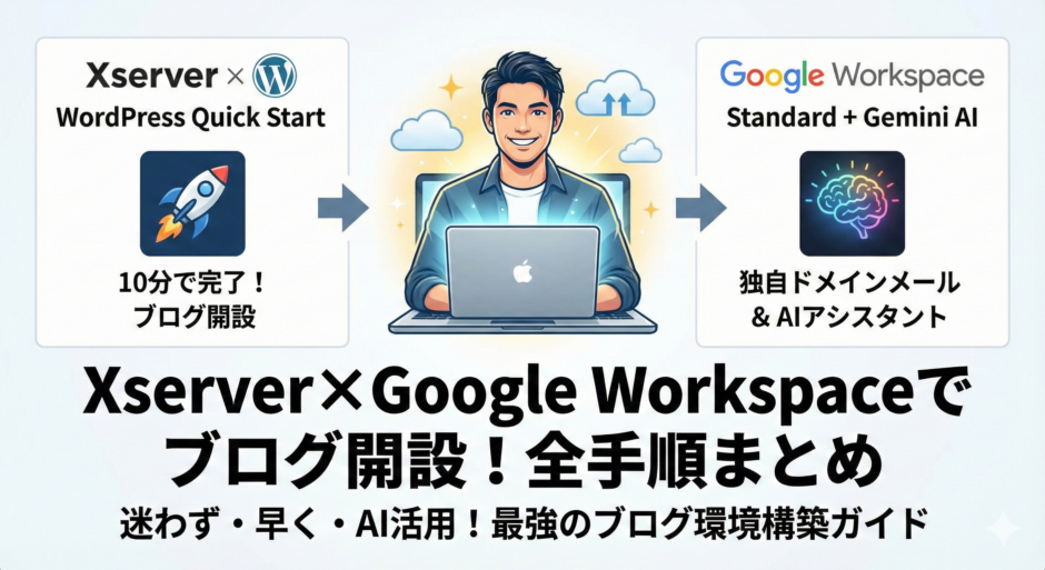 私自身、まったく同じことで悩みながら、XserverのWordPressクイックスタートとGoogle Workspace Standardを使って環境を整えました。